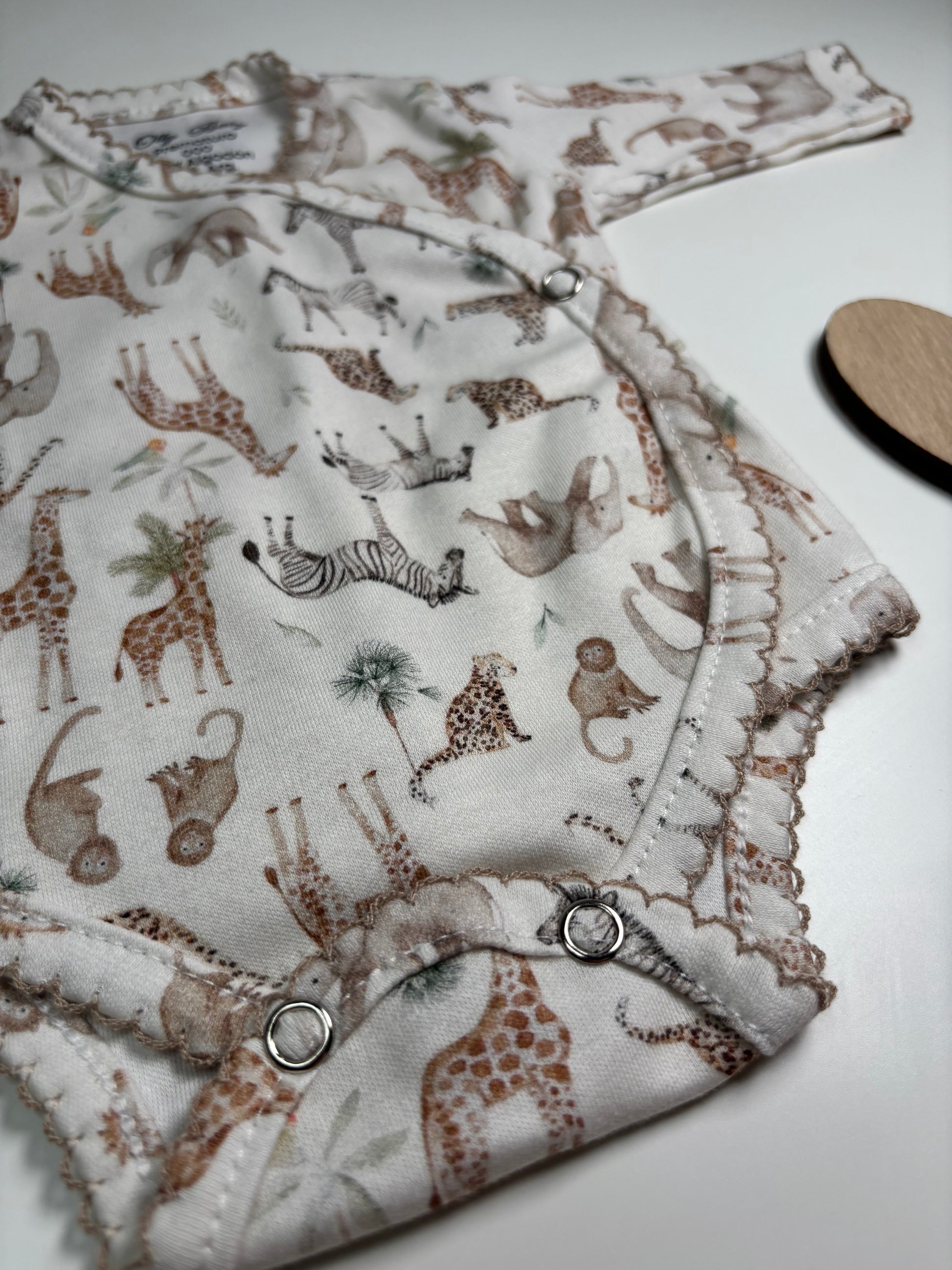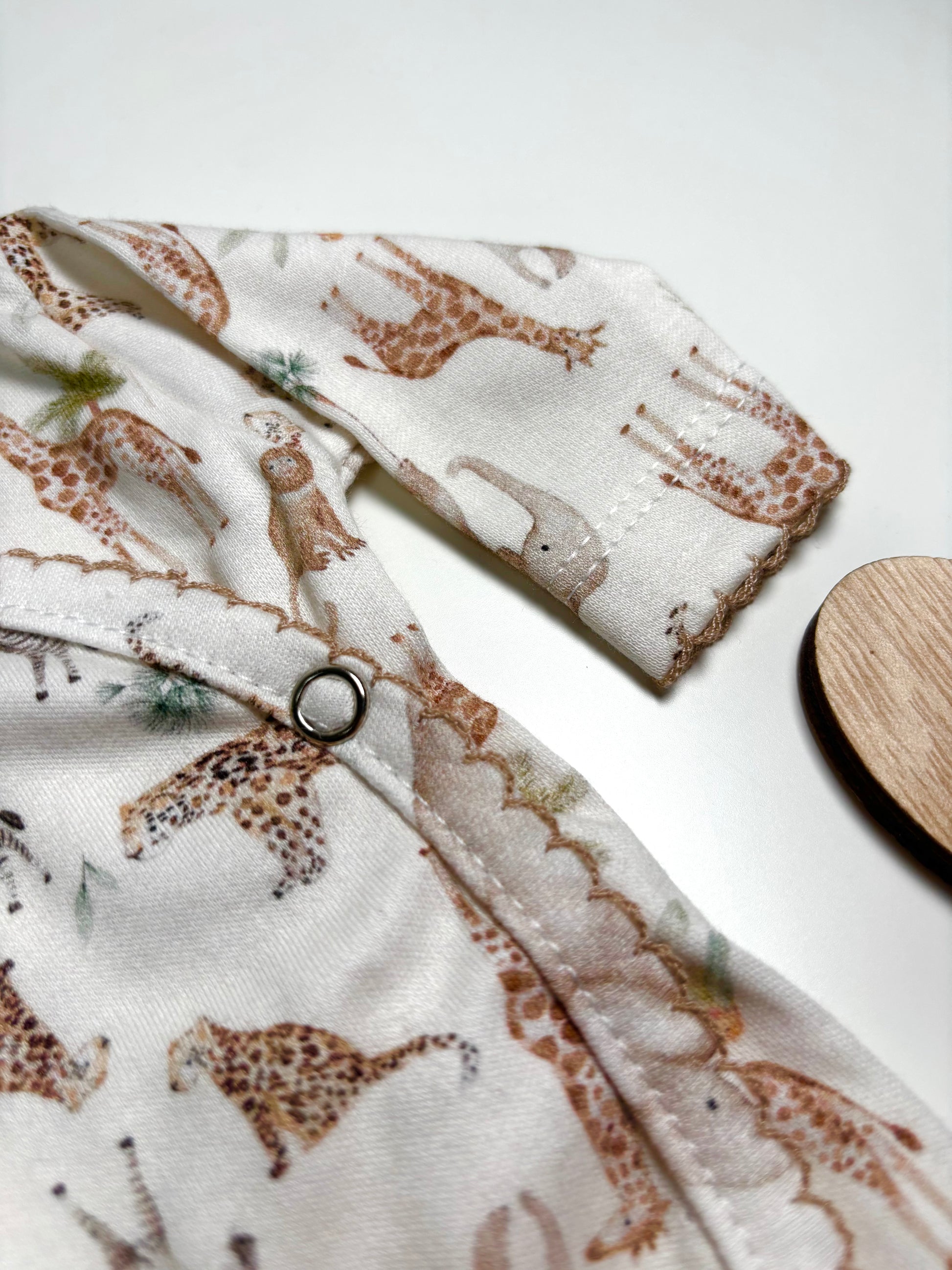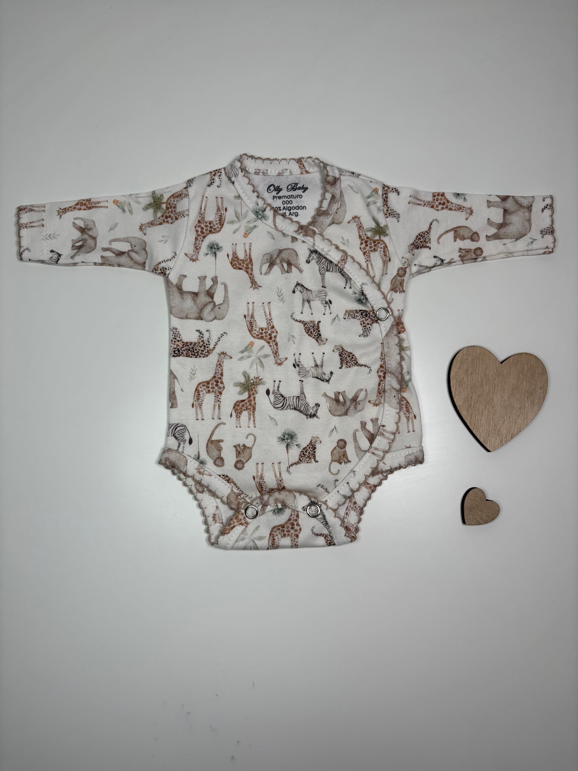 Suave y cómodo, confeccionado en 100% algodón, ideal para acompañar a tu bebé en su primera gran aventura con un tierno estampado de safari.